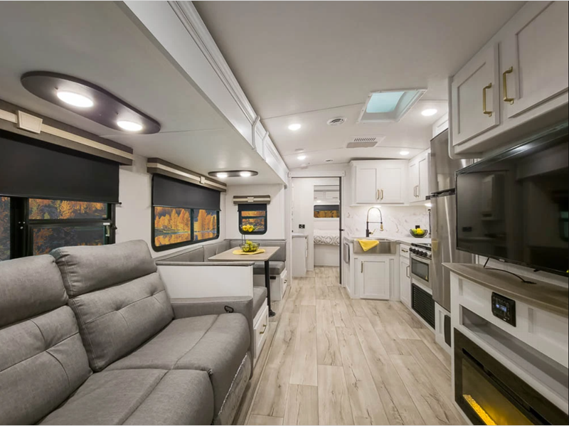 There are a variety of floorplans to choose from, including Platinum Series and Half-Ton fifth wheels, plus cozy travel trailers. Every model comes with a full ducted dual A/C to keep you cool on a hot summer day, large panoramic windows, and an arched interior ceiling. The vacuum bonded walls and walkable TPO reflective roof are ultra durable, and the heated and enclosed underbelly will help extend your camping season!