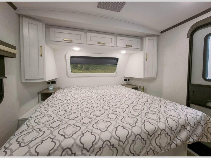 Sleeps 3 Slides 2 Length 31 ft 1 in Ext Height 11 ft 4 in Interior Color Bayport, Lexington Hitch Weight 795 lbs Dry Weight 7447 lbs Cargo Capacity 2143 lbs Fresh Water Capacity 44 gals Grey Water Capacity 78 gals Black Water Capacity 39 gals Furnace BTU 30000 btu Available Beds King Refrigerator Type 12V Refrigerator Size 10 cu ft Cooktop Burners 3 Number of Awnings 1 LP Tank Capacity 30 lbs Water Heater Type On Demand Tankless TV Info LR HD LED TV Awning Info 20' Axle Count 2 Washer/Dryer Available Yes Number of LP Tanks 2 Shower Type Standard Electrical Service 50 amp Similar Floorplans